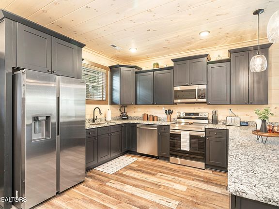MOTIIVATED SELLER! JUST REDUCED PRICE!! Just a short drive from the Pigeon Forge Parkway. This beautiful luxurious 4 bedroom 4 bathroom Cabin located in Cherokee Valley subdivision is the perfect investment property, vacation home or primary residence. The STR cabin is turnkey and ready to rent with a projection of $100k to $120K. This property is creekfront and offers all city amenities of city water, city sewer but with the feeling of being in the country. The seller has tastefully picked out all furniture, finishes and décor. On the main level you have one large Queen master suite with a beautiful ensuite with a tile shower. Also on the main level you have an open living dining and kitchen area. The living area has a cozy feel with the fireplace and plenty of seating for everyone and extra sleeping space if needed with a sleeper sofa. The kitchen is top notch with granite countertops and black shaker cabinets. The high-end appliance package completes the kitchens overall quality and look. On the main level deck you can enjoy the new four person hot tub while listening to the flow of the creek. There is enough yard space that the new owner can add a firepit area or more outside seating/hangout space. Upstairs there are two master king suites also with tile shower en-suites. The bonus bunkroom/game room is a must see with a twin over a full bunk bed for extra sleeping for the kids. Plenty of space to have large family gatherings. The Cabin should overall sleep 12 easily. Buyers and buyers agent should always verify square footage, taxes and tax records, restrictions and HOA