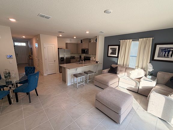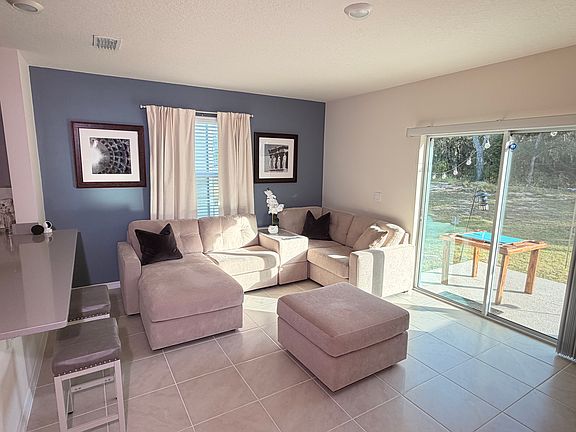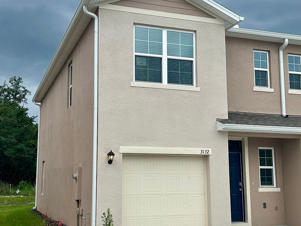 Welcome to Horse Creek at Crosswinds community of Davenport! Modern Florida living with this open plan three bedroom, two and a half bathroom. This bright and stylish corner unit 1,463 square feet of thoughtfully designed living space featuring sleek ceramic tile floors, dazzling countertops, stainless steel appliances, and a washer and dryer. Retreat to the spacious master suite, a peaceful sanctuary filled with natural light, complete with a generous walk in closet and a luxurious dual sink bathroom. Enjoy gorgeous sunsets on the back patio, which features a privacy fence and no neighbors behind you. Also, the best of contemporary living with smart home technology, a one car garage, energy efficient construction, and access to a sparkling resort style community pool. Move in ready and designed for easy living, this home blends modern elegance with low maintenance comfort.
