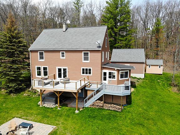 Your private oasis awaits! Perfectly situated on ~16.5 acres with expansive views of the valley, this completely updated post & beam gem even has a pond w/ ducks! Too many updates to list-New quartz kitchen with 2 dishwashers, upscale appliances and huge island, new huge 3rd lvl Owner's suite w/ laundry and double closets, and a new large multi-level deck to take in the views! A walkout basement is begging for finishing. 5 Bedrooms, 3 full and 2 half baths means everyone has their space. Relax in the hot tub, tell fireside stories, or take a cooling swim in the fenced pool w/ flagstone patio.