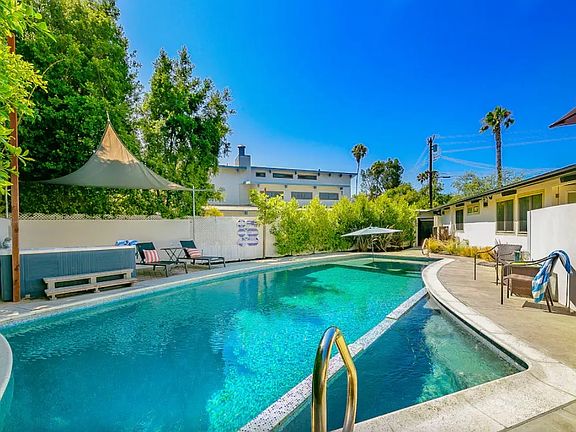 This single level contemporary home features 4 bedrooms and 3 bathrooms. With vacationing in mind, the house has been set up for lounging at the pool or use the outdoor kitchen system with a barbecue after a day at the beach or exploring San Diego. The home features 4-bedrooms and 3-bath and a bonus game room. Decorative tile flooring and dimming LED lighting throughout with a flowing great room with cathedral ceilings with 3 skylights, a 70'' flat-screen TV, comfortable seating, and a fire pit. The dining area is just off the living area with wraparound bench seating so everyone can eat together here. The dining/kitchen area has a flat-screen TV. A modern, chic kitchen, with Kitchen-Aid stainless steel appliances and glass tiles, is outfitted with everything you need to satisfy your culinary desires - just add the food and the camaraderie and have fun. A kitchen door opens up to the outside patio and self-contained private backyard. The primary Cal-king bedroom has slider access to the backyard with all of its amenities. A walk-in closet, a chair for reading or watching TV, and an ensuite bath with dual sinks and a large soaking tub/walk-in steam shower completes this peaceful retreat. The second bedroom has two queen beds, a closet, and a 60" flat-screen TV. This bedroom and the king third bedroom share a jack and Jill bathroom with 2 sinks and a shower/tub combination. The third bedroom has a king guest bed and a 42" flat-screen TV. This bedroom also shares the jack and Jill bathroom. The four bedroom has a king bed. Right across a short hallway is the third bathroom that has a walk-in shower. This home comfortably sleeps 10 in beds. Additional amenities include a washer and dryer and air conditioning except in the game room. There is parking for two small cars in the driveway or one large car and street parking is also available. The garage has been transformed into a game room with a pool table, a Pac-Man, an electric futon, and a large flat-screen TV - making it a great place to play or relax when you have had enough fun in the sun. Central Air Conditioning Close to Beaches and attractions such as The San Diego Zoo, the Gaslamp District, Old Town, Balboa Park, and SeaWorld Close to Barnes Tennis/Pickleball Center month to month