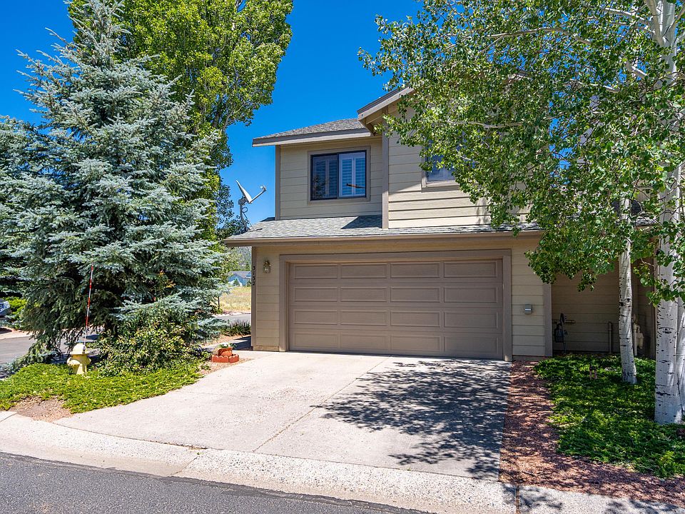 This is a must-see townhome! A very open and spacious corner end unit backings to grassy, undeveloped open area with trails and beautiful mountain views! Brand new interior paint throughout finished 7/17/20 for a fresh look. The interior is naturally bright and inviting. This is one of the only units with central A/C! The upgraded interior boasts slate and wood-like floors, a lovely gas fireplace, wood shutters, cathedral ceilings, a security system, and more. A large fenced back-yard leads straight to trails. This 3 bd/ 2.5 ba townhome has a full two-car garage with a laundry sink. Garage is only shared wall with a neighbor. Close to public parks, Snowbowl, Museum of Northern AZ, trails, and wildlife. Call to schedule a showing today!