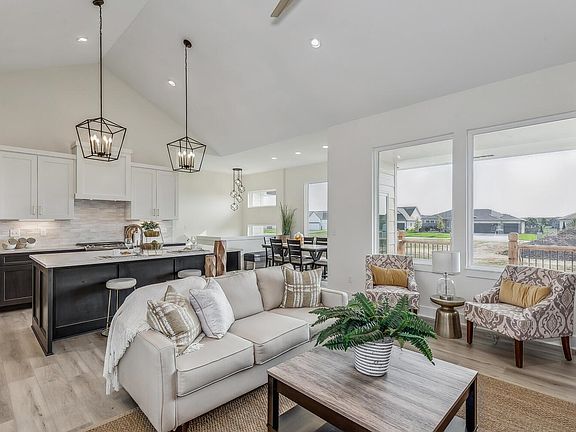 This beautiful Pinnacle plan designed by Socora Homes has the character and charm you would find in a classic home but with all the luxury finishes you would expect to see today. A welcoming front porch greets guests into the airy and spacious living areas featuring vaulted ceilings, well designed kitchen, great workspace, gas cooktop, quartz countertops, large island, beautiful cabinets, walk-in pantry, living room with a decorative gas fireplace and dining area offering immediate access to the 13x10 covered deck. The primary suite with a tray ceiling, en suite with double vanities, tiled shower and large walk-in closet are tucked away from the rest of the house providing privacy and relaxation. The lower level is complete with a large family room, wet bar, 2 bedrooms and full bath. This cul-de-sac, E facing back yard house is ideal for entertaining family and friends! Fontana offers a zero-entry pool with splash pad, playground, walking paths and lakes. It's also minutes away from New Market Square for all your shopping and dining needs. A $175 mailbox key fee is collected at closing. GENERAL AND SPECIAL TAXES HAVE NOT BEEN FULLY ASSESSED. Both are estimated and not guaranteed. Specials are estimated to be about $160.00/month for 20 years. LOWER SPECIALS, LOWER TAXES AND MAIZE SCHOOLS. All information deemed reliable and not guaranteed. OFFICE HOURS: 1-5PM, CLOSED TUESDAY AND WEDNESDAY OR BY APPOINTMENT.