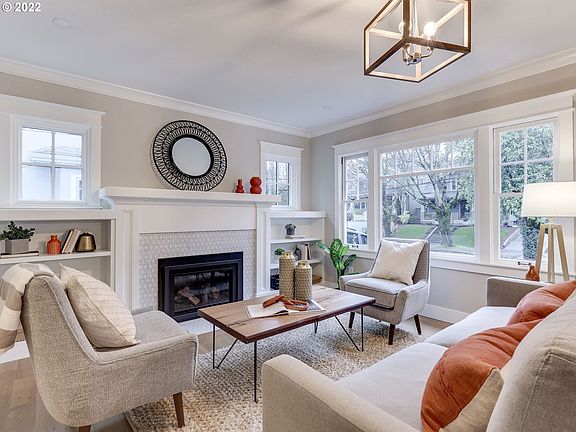 Charming 1925 Irvington Tudor, restored to the studs. Modern amenities w/ period details in tact. Wonderful layout w/ dual masters upstairs, tech room, butler pantry, & more. New electrical, plumbing, HVAC, insulation, and interior finishes. Mix of restored wood windows by Chosen, and new Marvin. Fenced backyard w/ large Trex deck. Detached garage, perfect flex space. Portland's prime Historic neighborhood, near all PDX hot spots. A must see, Agent Owned. [Home Energy Score = 6. HES Report at https://rpt.greenbuildingregistry.com/hes/OR10198453]