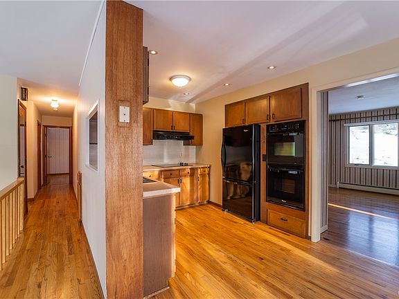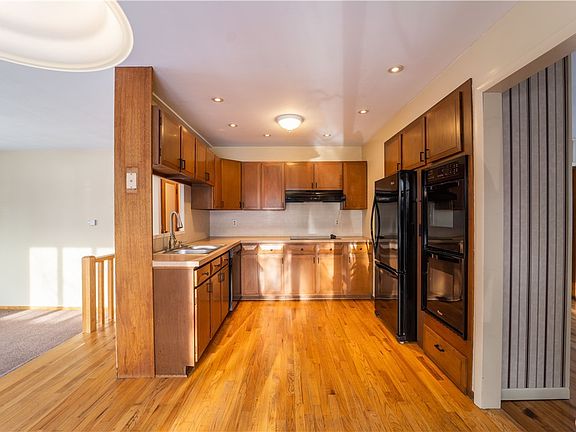 The 3-bedroom home offers a unique interior design with spacious rooms throughout; as well as exterior amenities such as a multi-vehicle detached garage, a back-patio, and a sizable amount of backyard space. The home is in quality interior & exterior condition, while providing additional curb appeal in the warm seasons with landscaping capabilities. The home offers renovated rooms throughout the unique interior layout, holding potentially multi-purpose rooms for new homeowners to designate at their discretion. The contemporary kitchen is lit up by recessed lighting, open into the large living room while also providing potential dining space. The adjoining common space can be used for a formal dining area, or large enough to be used as a 2nd living room. An additional smaller-sized room is suitable for various uses such as office space. The 3 large bedrooms are in great condition while each offering closet space. The home holds 1 full bathroom with a double-sink vanity, as well as a half-bathroom. The full-basement provides an abundance of storage space while also offering a workshop area. Additional storage space can also be utilized in the detached garage.