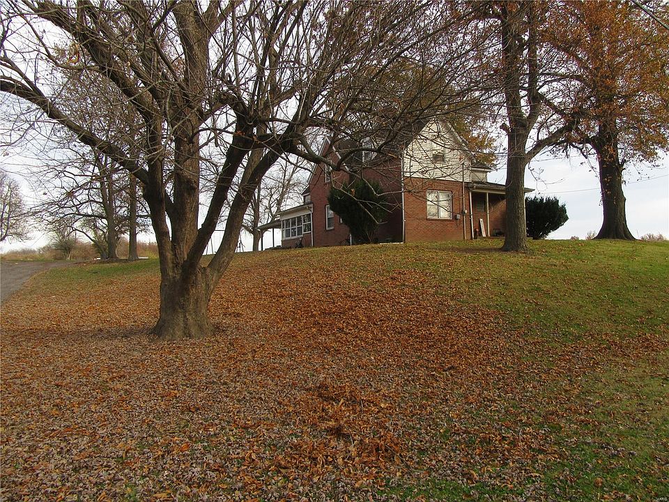 Just waiting for your popular Farmhouse Decor, this Turn of the Century Farmhouse is on 3.58 acres close to Wolf Branch School w/Detached 1600 SF 3 Bay Garage/Workshop. This 2 sty brick/siding home features 4B & 2B w/Main Floor Master, an Eat in Kitchen leading to Sun Porch & Separate Dining Room that could also be used as 5th Bdrm or Office. Living Room features 10ft ceilings, Georgian Marble Fireplace, Bay Window & Foyer Entry. Upper Level has 4 possible Bdrm w/Double Closets & Bath. Lower Level is partially finished featuring a Family Room w/Fireplace, Built in Masonry BBQ/Grill area, Summer Kitchen & Bar, Laundry Area, Bath & Storage Room. Lower Level Walk Up leads to a Storm/Bomb Shelter/Cellar & 3 Bay Garage/Workshop Area (wired 220) large enough to Store all your Toys. Property was prior Orchard some Fruit Trees Remain. Plenty of space for Gardening, RV Parking or Softball Game. Appliances Stay including W&D. Code Compliant. See Today before Low Interest Rates Get Away!