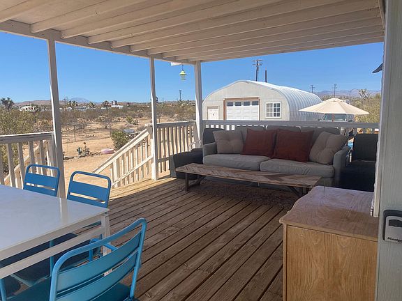 Eclectic artists home in a beautiful peaceful setting, stand alone property, not far from all amenities. Equidistant from Yucca Valley and Joshua Tree. Fully furnished with everything you could need and more. Temporary rental, would suit someone in between places, someone who wants to check out the desert or someone who just wants a nice place to chill for 6 months. 3 bed, 2 bath, light, spacious, creative and comfortable space. There is an amazing deck that is just the best spot for relaxing and taking in the desert vibes. There is a cowboy pool that is wonderful for cooling down from the heat and an acre of fenced in land (pets welcome). Rent includes utilities (capped) trash, wifi & netflix. Bring your belongings and have a home that is already set up for a lovely stay. Rent includes water and electric, these are capped at $50 and $200 per month, this is a fair rate but if you exceed that then it will be the tenants responsibility to pay any additional costs. Also included is trash service, wifi and a monthly pest control service, this is the desert, there are rodents and pests so best to have the service in place. Pets are permitted however if any damage is caused then it will be the tenants responsibility to cover any costs. Dogs/cats must be discussed before any rental agreement.