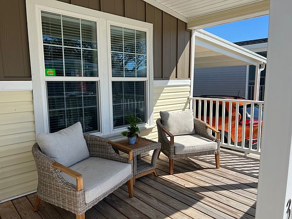 Motivated seller!!! This is a must see home, that will not last long ! This 2020 champion model manufactured home comes furnished and features a wide open floor plan with three bedrooms and two baths. This home has wonderful, curb appeal and a sweet front porch. The perfect spot to watch the sunset. As you enter the home, the dining area and kitchen are wide open. There is a nice size island to entertain your guest. The home is vaulted ceilings with beautiful crown molding throughout. The kitchen has gorgeous cabinets plenty of storage. It's definitely a chefs dream kitchen. A farm sink which is stainless steel whirlpool appliances. The living room is adjacent from the kitchen and dining area with large wide hallways and doors handicap accessible. The bedrooms have carpeting. Beautiful laminate flooring throughout the rest of the home. The smallest of the three bedrooms would be perfect for a twin size bed or office. The guest bedroom is large enough to house. A queen size bed. Indoor laundry facilities. The master is huge, has a great walk-in closet, beautiful glass and tiled shower. The bedroom also has an opening to this beautiful large full range of the home back porch, facing the water and beautiful tree line. This home is located in the oaks at Colony Cove and it's also walking distance to the pool area. Look no further move-in ready. Lot rent $1144.64 Located along Florida's Gulf Coast, in highly sought-after Manatee County, Colony Cove is an age-qualified, resort-style mobile home community with waterfront views, premier new homes and amenities designed around an active lifestyle. Much more than a place to live, Colony Cove and The Oaks at Colony Cove is the perfect place to stay active, make long-lasting friendships and enjoy the life you deserve. Residents enjoy a private marina with dry and wet boat slips, five spacious clubhouses, six heated swimming pools, pickleball and tennis courts, two fitness centers, two dog parks, billiards and much more! Love the outdoors? Colony Cove is in the quaint town of Ellenton, just outside the Bradenton and Sarasota metro area. Sarasota is the gateway to miles of beaches with fine sand and shallow waters, like Lido Beach and Siesta Key Beach. Enjoy sunbathing, fishing, boating, or site seeing from some of the nation's most beautiful beaches on Florida's Suncoast. The area is also known for diverse dining, enriching arts and culture, and premium shopping districts. It hosts several cultural institutes, most famously, the Ringling Museum of Art, which showcases old masters and modern art. If you're looking for a comfortable, friendly atmosphere, with easy access to everything that makes Manatee County one of Florida's most vibrant areas, Colony Cove is the perfect place to call home. All listing information is deemed reliable but not guaranteed and should be independently verified through personal inspection by appropriate professionals. Integrity Mobile Home Sales cannot guarantee or warrant the accuracy of this information, measurements or condition of any property. Measurements are approximate. Lot rent subject to change.