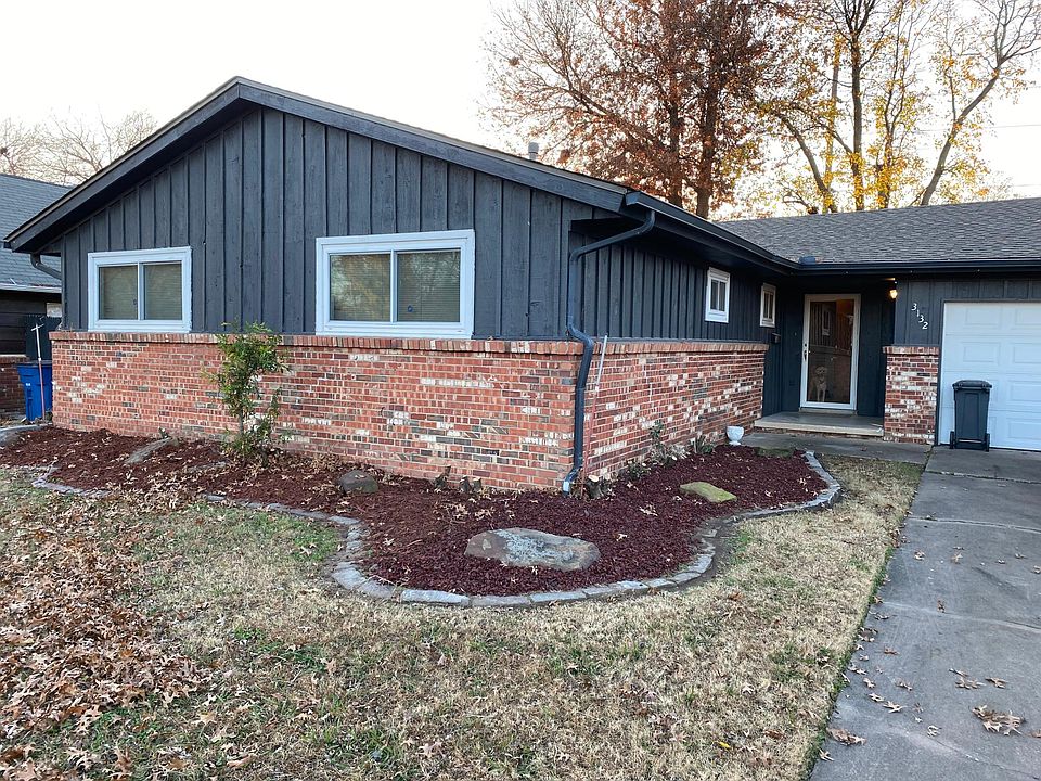 3 bedroom, 2 full bathroom, office/bonus room, 2 car garage and storage shed. Washer and Dryer hookups. Completed within the last 2 years: new flooring, new paint inside and out, new roof, new windows, new bathroom vanities, toilets and sinks, new dishwasher, kitchen sink, stove top and vent hood, updated kitchen counters, new lighting and fans. Neighborhood pool. Easy/quick access to Hwy 169, 51 and 44. Responsive Landlord. Tenants responsible for all utilities, lawn care and renters insurance. Pets subject to approval with $500 non refundable pet fee. $1,385 Security Deposit. $1,385 Monthly rent.