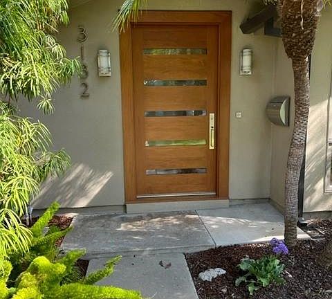 Fully renovated turn-key mid-century modern home in Rossmoor for rent. Quiet, center of the tract location. Beautiful landscaping, custom hardwood garage door and side gate, and solid mahogany front door with recessed reeded glass welcomes you to this open-concept living home. Raised ceilings, maple hardwood floors and custom maple built-in cabinetry throughout. Gourmet chefs kitchen with contemporary matte granite square edge counters, smoky grey glass back splash, 6-burner professional Wolf gas stove and double oven, wolf microwave drawer, 48-inch built in Sub-Zero fridge and deep stainless-steel sink. In addition to the 3 large bedrooms this property features a large office with built in cabinets and desks for two; perfect for stay-at-home work. Dimmable lighting throughout, all new electrical and plumbing, Nest thermostat, gas fireplace in living room, skylights in family room, office and kitchen provide a large amount of natural light throughout. Wired surround sound in family room with connection to built-in outdoor backyard speakers, solid wood dual-pane Pella windows and tankless water heater. 2-car garage with built in storage and 220V outlet for electric car charging. Award-winning Los Alamitos School District and wonderful nearby shops, dining and entertainment. This is truly an exceptional home, with pride of ownership evident. Excellent credit and references required.
