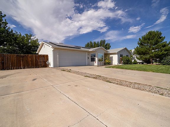 Welcome to this beautiful 3-bedroom, 2-bathroom single-level home with solar located on a quiet corner lot in the lovely Grove Creek subdivision in the Southeast part of Grand Junction. This home combines modern amenities with a charming, comfortable design. Step inside to find a bright and airy living space. The south-facing kitchen window floods the home with light, creating a warm and welcoming atmosphere. The kitchen and dining areas are perfect for family and friend gatherings and entertaining. The master suite boasts a walk-in closet and an updated tiled walk-in shower, offering a touch of luxury. Outside, you'll find an extra poured concrete driveway providing additional parking, along with RV parking in the side-yard behind the double gate. The backyard is a true oasis with garden boxes for your gardening projects, a firepit, a storage shed, and a full privacy fence, ensuring a tranquil space to relax with your favorite beverage. Energy efficiency is a key feature of this home, with new solar panels installed to help reduce your utility bills. All appliances are included, making this home truly move-in ready. Situated in a wonderful neighborhood with a park, this home offers the perfect blend of tranquility and convenience. Don’t miss the opportunity to make this beautiful home your own. Schedule your viewing today!