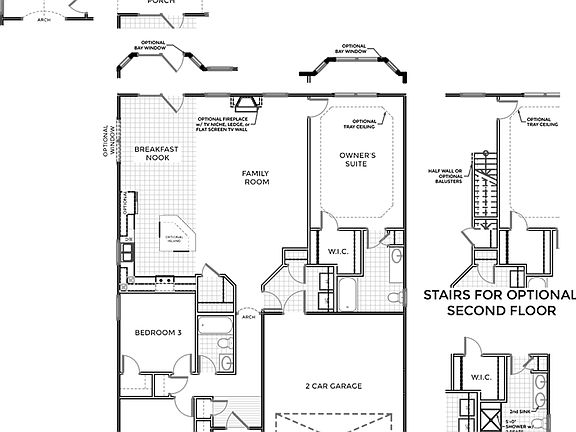 This one level home has a great room with an optional gas log fireplace. The open concept allows the kitchen access to the dining area and the family room. There is a large walk in pantry located in the kitchen and an optional oversized island that has enough room for preparing meals and siting down to eat them at the same time. Bedrooms two, three, and second full bath are located on one side of the house, while the private master suite is on the other. The spacious master suite has a walk in closet, and options to add a big bay window and a tray ceiling. The master bath is built with a dual sink vanity and a large walk in shower that has 2 seats. Finishing out the main floor is laundry room with a coat closet. Crawl space foundation and a 3-car garage.