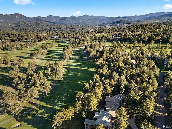 Link living in Evergreen’s Island at Hiwan! A sought-after subdivision of Hiwan Country Club, the Island is beloved for providing a mountain lifestyle with a more traditional neighborhood feel and for its proximity to, well, everything! This charming home backs to the picturesque 5th fairway and features a warm and inviting layout with tons of windows that provide a tremendous amount of natural light and stunning views of the tall pines and the grassy course. It is thoughtfully situated on the .4 acre lot to achieve a feeling of privacy and seclusion. You’ll be greeted by a two-story entryway that flows into multiple living spaces. Wood beams and custom ironwork railings add a rich touch of rustic chic to this traditional layout. In the updated kitchen, the countertops are quartz, anchored by gleaming gray subway tile and wood cabinetry. The large center island is home to a gas cooktop and you’ll love the views from the kitchen sink! Adjacent to the kitchen, the laundry/mud room has been recently renovated for convenience, style and more views. Upstairs, the primary suite is a treehouse retreat, complete with a fireplace, reading nook and a private deck – perfect for enjoying your morning coffee. Two additional bedrooms share a full bath, completing the upper level. The walkout lower-level is home to the fourth bedroom, bath, home office and spacious rec room with a wet bar, that opens to the lower patio and verdant backyard. Skylights throughout the home ensure spaces are awash with natural light, and the 3 fireplaces, swathed in natural stone surrounds, add warmth and charm. There are multiple outdoor living spaces that offer perches to sit to soak in the beauty of your surroundings and the flow of the home is perfect for guests and entertaining a crowd. Just a golf cart ride away from the clubhouse, outdoor pool and tennis/pickleball courts, this home offers a fabulous foothills location paired with the privacy and security you’d expect from a gated enclave.