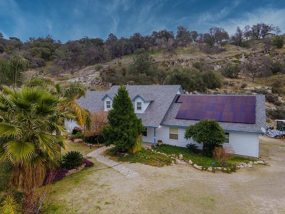 Nestled on 4.67 acres, this exceptional custom home was built in 2006 and comes complete with a 3 Car Garage, offering ample space for storage or hobbies.Embrace sustainable living with a fully owned 8.875 kW solar system featuring two 10 kWh batteries. This system is designed to efficiently cover your entire electricity bill, and the solar batteries are also designed to power the home for multiple days during unforeseen outages, ensuring continuous comfort and functionality. The batteries can also power the A/C, an added unique feature.The residence boasts a 50-year roof, cement siding, two 2500-gallon water tanks and a graded second pad to build another structure, providing endless potential for expansion. This property offers the perfect fusion of town convenience, privacy, and proximity to Shaver Lake and China Peak for outdoor enthusiasts.The living room impresses with soaring vaulted ceilings and a custom fireplace, creating a warm and inviting atmosphere. The spacious kitchen, featuring a huge island, is a focal point for gatherings and culinary creativity. Discover the large primary suite with a luxurious jetted tub, as well as a second suite with an ensuite bathroom.Wake up to stunning views and explore your own backyard on morning hikes. The property also boasts fruit trees and bushes, adding a touch of orchard charm to the landscape. Don't miss the opportunity to call this property your home - a sanctuary of comfort, sustainability, and natural beauty.