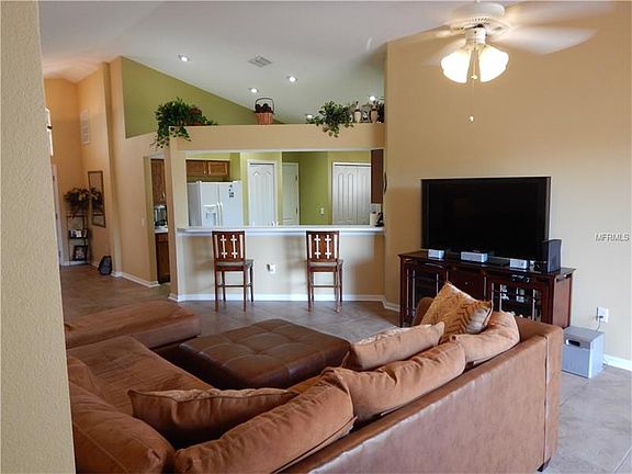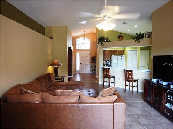 Perfect starter home 4 bedroom, 3 bath home backs up to conservation lot. This home features 1821 Sq feet of living space, Open floor plan with separate formal dining room with new flooring, Open and bright Kitchen with Hardwood Cabinets, eat-in area and breakfast / bar overlooks Living room. New tile throughout kitchen and living room. Front bedroom sets next to bathroom perfect for guest suite or office. Master bedroom has sliding glass doors leading to patio, master bath features double sink vanity, garden tub, separate shower stall and walk-in closet. Jack & Jill bathroom sets between bedroom 2 & 3. Double sliding door open to patio overlook Conservation view. Back bedroom has new carpet, new paint in living room area.