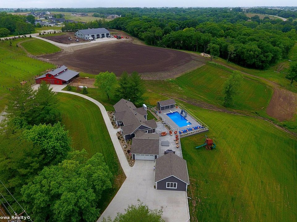 Picturesque views encompass this gorgeous in-town acreage, nearly 10 acres of country living, full barn and relaxation The walkout ranch was torn down to the studs in 2017 and completely redone with 4 bedrooms and 4 bathrooms, high beamed ceilings, enormous drop zone and laundry. The over 3500 finished square feet is perfectly placed with a gourmet kitchen, huge bedrooms and spa like bathrooms Relax in the backyard in the gorgeous pool which includes a storage pool house with a bathroom or sit by the firepit after dinner on the enormous concrete stamped patio. The spacious new barn features animal stalls, ¾ bath, professional finished rubber floor. The second story includes a full living quarters with a kitchen and sleeping quarters. Check out the drone link for the full view of this unbelievable home and all of its amenities