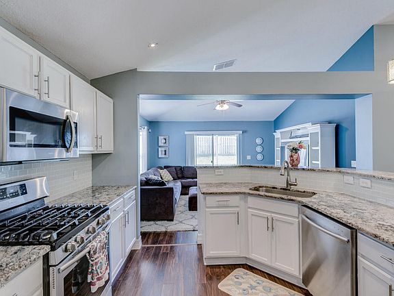 THIS HOMES IS A MUST SEE! A Gorgeous 4BR/2BA! A remodeled & redesigned kitchen w/ a breakfast bar that opens into the living areas of this home with granite counters, white cabinetry, tile backsplash, stainless appliances, and a GAS range. Other features and updates include pendant lighting over the breakfast bar, wood laminate flooring, all updated lighting and ceiling fans. This floor plan is very spacious w/ vaulted ceilings, built-in niches, tasteful paint colors, plant shelving and 5 1/4 baseboards. Both bathrooms have updates with double bowl sinks in the master bath w/ granite counters and a granite counter in the guest bath. Inside laundry room with cabinetry and a granite counter to fold your laundry on.The backyard is nice and private with a screened in porch and privacy fence!