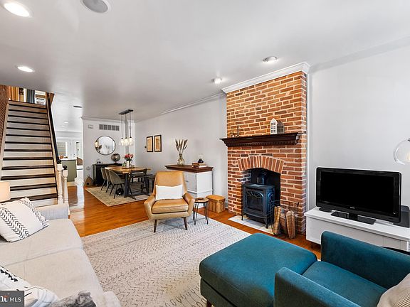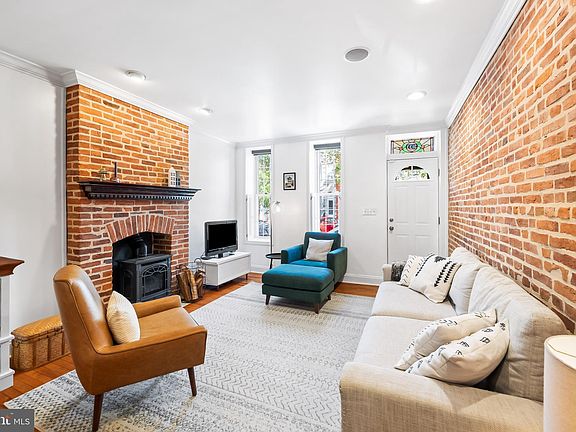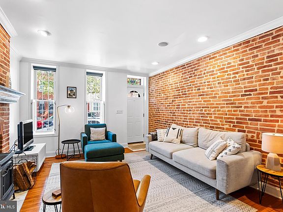 This rowhome combines size and charm in a great Canton location! The living room has exposed brick walls, a fireplace, complete with a functioning gas stove, hardwood floors, and tall ceilings. The dining room offers seating for 6, with enough room to spare to accommodate a bar to entertain your guests. You won’t find many kitchens this size in Canton, providing functionality and storage. The kitchen island has seating for 4, while the countertop allows plenty of food prep space. Stainless steel appliances include a gas stove and separate hood vent. Dark granite counters match nicely with the subway tile backslash. A wall of patio doors allows for lots of natural light to come into the kitchen space, while also providing great access to the deck and patio. Upstairs you’ll find two large bedrooms and two full bathrooms. The front bedroom has tall ceilings, exposed brick walls, and great closet space, while the back bedrooms will be one of the biggest guest rooms you’ll find in this price range. While both bathrooms are accessed from the hallway, they essentially act as dedicated bathrooms for each of the bedrooms. Access to the roof deck is from the hallway, and provides views of the inner harbor, Fort McHenry, downtown, and Patterson Park. The finished basement offers wonderful ceiling height so the space could be used as a gym, office, theater room, or a 3rd bedroom. There is yet another full bathroom in the hallway before getting to the finished room in the rear of the basement, which is currently used as a guest bedroom. This is one you won’t want to miss, schedule a tour today.