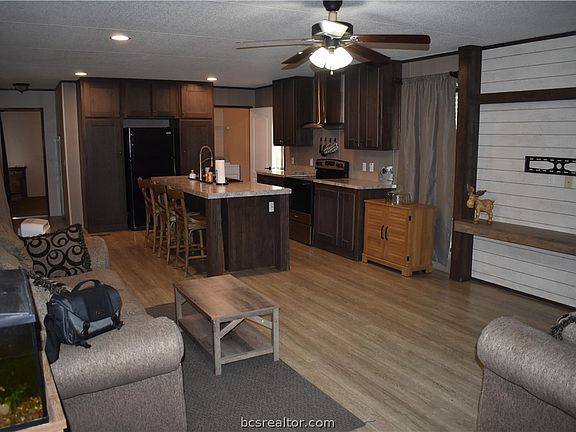 Quiet country living! Beautiful corner lot in Millican Townsite with 3 bed, 2 bath manufactured home with a fenced in yard & gorgeous trees. This home will come with both washer and dryer in a dedicated laundry space along with a spacious kitchen island & open concept living area. Primary bedroom has a walk in closet with attached en suite boasting a garden tub & walk-in shower. Secondary bedroom completely furnished with twin bunk bed, dresser, & wall-mounted TV! New AC unit recently installed. 20 minutes to A&M, 10 minutes to shopping & restaurants - all in a quiet community atmosphere.