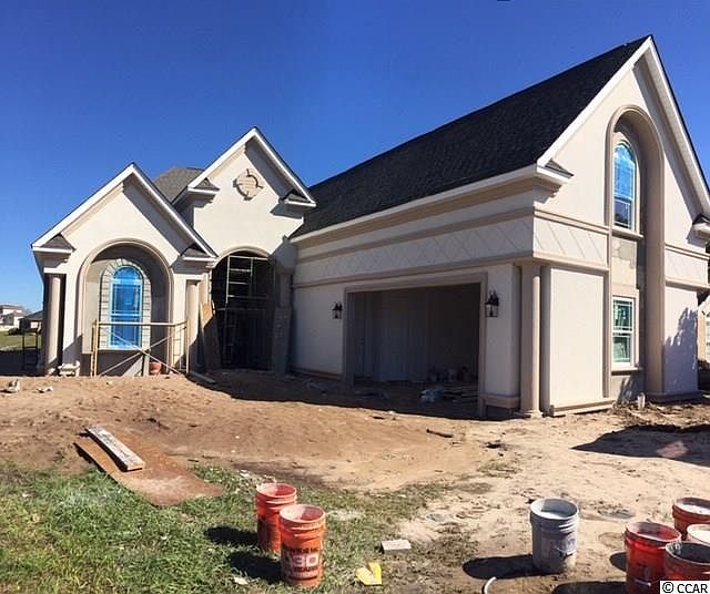 Stunning Mediterranean style home under construction in the gated Bluffs on the Waterway Community in Carolina Forest. Anticipated completion December 2018. Sitting on a gorgeous lakefront lot with fountain views. Ample upgrades including coffered ceilings, two master suites, and an outdoor kitchen and so much more. Community features private boat storage, floating dock, two clubhouses, tennis courts, pool, playground, and direct access to the Intracoastal Waterway. Contact your real estate professional to learn more today!