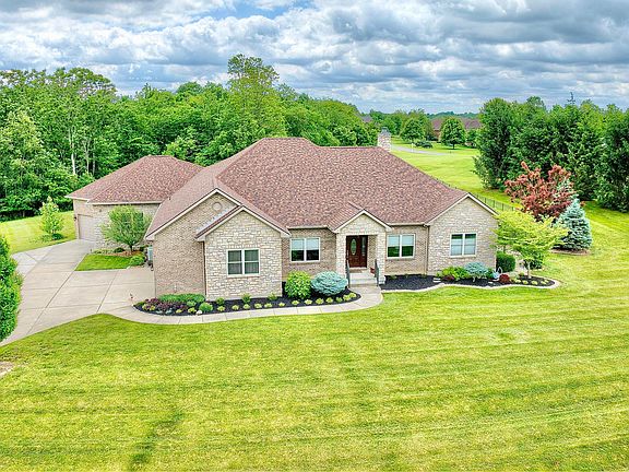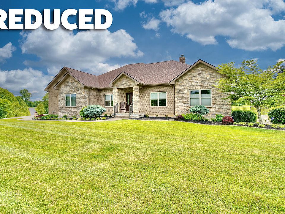 Luxury ranch on 2.8 private acres with wooded views and an in-ground pool! Features 5 BRs, 3 full baths, 1st-floor laundry, and a gourmet kitchen with Corian counters, counter bar, and a 5-burner gas stove. Primary suite offers tray ceilings, His & Her vanities/closets, soaker tub, tiled shower, and a walkout to pool. Finished LL includes full kitchen, FR, and walkout. Updates: new septic (2024), roof (2022), and metal fence. Private addition with its own garage and walkout -- ideal guest suite! An entertainer's dream inside and out!