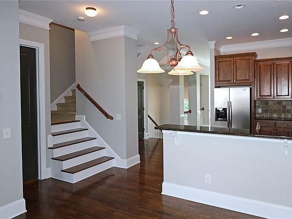 - Kitchen Features: Cabinets Stain, Breakfast Bar, Stone Counters, Kitchen Island, View to Family Room