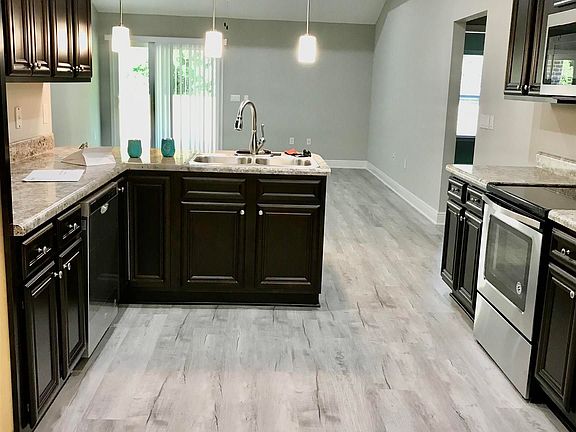 The Flynn Built - "Key Largo" floorplan offers a spacious living area with master suite with three additional bedrooms, dining room and laundry room. Trey ceilings in the master and living area. The "flex" room is ideal for bedroom, office or dayroom. A front covered porch will lead you into the home to find Coretec vinyl plank flooring throughout the main living areas with recessed lighting and trey ceiling in living room. A double vanity, garden tub, separate shower and walk-in closet complete the master ensuite. Walk out of the living room onto a rear covered porch perfect for entertaining friends and family. In the kitchen you will find stainless steel Whirlpool range, dishwasher, microwave, dovetail soft-close drawers and pantry. Home is GOLD FORTIFIED with certificate and hurricane window covers. Home also includes NEST smart thermostat, irrigation system, double garage with insulated garage door, 7 years remaining on structural warranty and more. Fenced-in back yard. Spanish Cove amenities include year round pool, 2 clubhouses, private fishing pier, beach and picnic area, tennis courts, 24 hour security and much more. Additional photos to come There is a one time buy-in fee for use of the amenities in the amount of $650 and a transfer fee of $150 for the new owners. All pertinent dimensions and information to be verified by buyer or buyer's agent. THIS PROPERTY WILL NOT BE AVAILABLE TO SHOW UNTIL 10 DECEMBER, 2022. Please contact listing agent for details