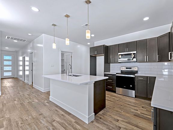 New construction home that backs to the Colorado Riverfront Trail with no rear neighbors. Ranch home with 3 beds, 2 baths, 1602 sq/ft, and nicer finishes. Enjoy the open floor plan, 9’ ceilings with tray in living room, central AC, LVP flooring, and an abundance of can lights. The kitchen includes stainless steel appliances, quartz countertops, pantry, and cabinets with dovetail constructions and soft close hinges. The primary suite is fitted with a 4-piece bathroom including a fully tiled shower, dual vanity, and large walk-in closet. Outside enjoy the covered patio, fenced backyard, front landscaping with automatic sprinklers, stucco siding, and a 2-car garage. River Walk subdivision features riverfront trail access & 2 loop lane parks.