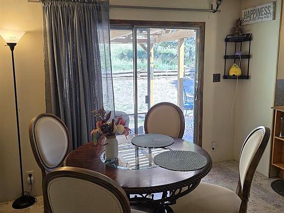 Wonderful property in Ouray County! Over five acres of land, no HOA, has room for RV parking, zoned for an additional home, fenced area for larger animals and borders hundreds of acres of Colorado public lands on the southern property line! Right across the highway from Ridgway State Park. Fifteen minutes to Montrose and ten minutes to Ridgway. This cozy home is a completely remodeled three bedroom, two bathroom 1050 sq ft modular with a rear patio and pergola. There is also a 1600 sq foot metal 2+ car garage/shop with a finished room on the main level with stairs that lead to a finished storage area above. This building is plumbed for in-floor hot water heat, has upgraded electrical service, two new garage door openers, and an outdoor, fully enclosed, dog run with an insulated shed attached. There is a fire pit and a large fenced yard for your fur babies. Starlink internet dish and router (monthly service charge paid by buyer), appliances including washer and dryer, shed and many yard tools included. Buyer would consider selling the home completely furnished.