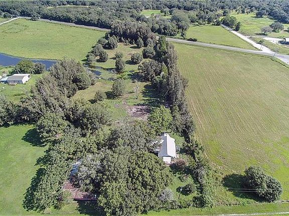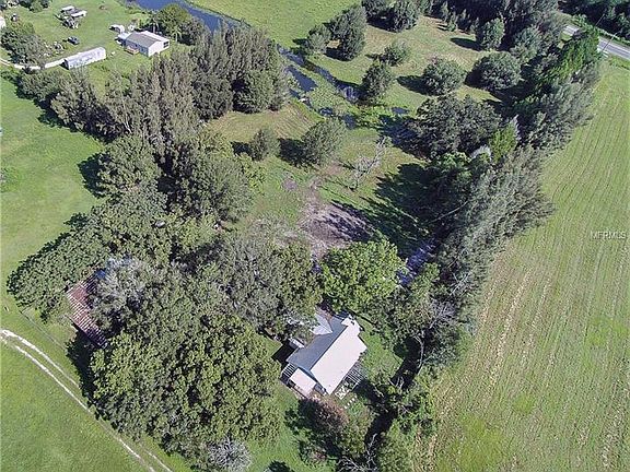 5 ACRES, Quaint Country Living at its best! This adorable 1920 built 3bd/1bth home seems bigger than the listed square feet indicate...OPEN floor plan flows so nice, original built in niches and original hardwood floors remain in the main part of the house. Metal roof, cozy fireplace in the large family room for those cool nights, screened front porch to enjoy sitting and listening to nature. HUGE Red barn/workshop that has that old farm feel. This is a must see on your list if your looking for a little place to get away from the everyday hustle and bustle! This home has all the charm a home built in 1920 can offer on 5 ACRES, totally fenced, with a POND! Mature oak canopies spread throughout the property. The possibilities for this home are endless. Bring your horses, chickens, goats...plenty of pasture to graze and the barn is large enough to tuck them all away. The drive to the property will make you feel like you're a world away...yet you are just minutes from I-75 and all our modern conveniences including our beautiful beaches, shopping, golf and all that Florida has to offer. Schedule your showing today this one won't last long!