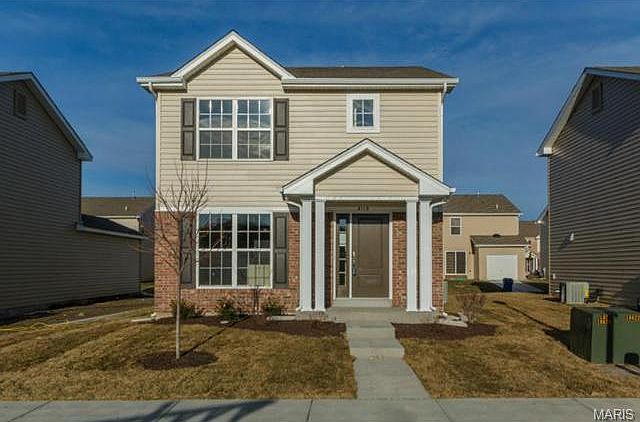 BRAND NEW, "Lifestyle" Inventory home by Fischer & Frichtel! This 3 bedroom, 2.5 bath home has 1,365 square feet of living space and is located in the Charlestowne neighborhood. Features include 42 inch cabinets, Whirlpool appliances including electric stove-microwave-dishwasher, huge Master closet, white 2 panel designer doors, satin nickel door hardware, upgraded flooring, R 38 ceiling insulation, Trane energy efficient furnace and 13 SEER AC, 25 year shingles, 1 car attached garage, upgraded brick elevation, vinyl siding, enclosed fascia-soffits, 10 X 10 patio, full basement, garage door opener, full yard sod, 10 year homeowners warranty and more. This is a "Lifestyle" home where a low annual fee covers lawn maintenance. Enjoy community amenities including a lake, pocket parks, playground and an inviting waterside pavilion. With easy access to Highways 370 and 94, this community is located just minutes from Historic Main Street in St Charles and Lambert International Airport.