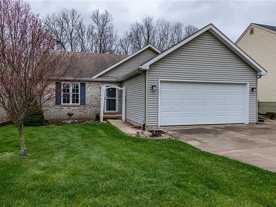 Step in to this maintenance free 20 years young ranch and enjoy! Vaulted living room with gas log fireplace and starter opens into kitchen and dining area. Kitchen has been updated with quartz counters and new cabinets! Then step out to the screened porch that spans the length of the house and overlooks the peaceful private back yard! Down the hall is the updated bath with beautiful tiled shower and glass doors,new vanity and sink! Head downstairs to Rec room with bar, another bedroom and full bath with jetted tub!An extra room for an office,craft room or what ever you decide! Spacious laundry with washer and dryer,battery back-up sump and storage. Also has access to outside patio and shed that looks like a mini house for all the lawn equipment! Hurry on this one!! There is no refrigerator.