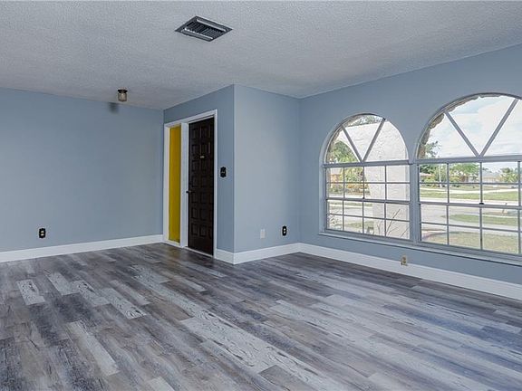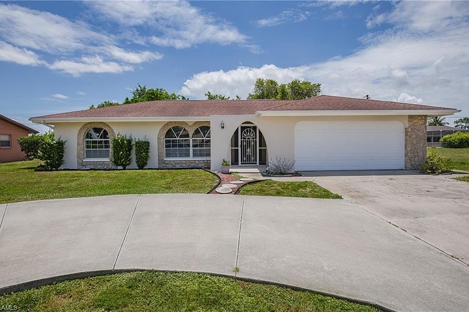 Don't miss out on this great opportunity to own your own charming home in SE Cape Coral for under $200,000! This newly refreshed 3 BR/2 BA 2 car garage home greets you with a circular driveway for ease of entry and exit. The home has been painted inside and new laminate flooring installed throughout. This floorplan offers a spacious great room with eat-in kitchen, that overlooks the large fenced in back yard, with room for children and/or pets to run and play! If you're looking to live the SW Florida lifestyle, there's plenty of room to install a swimming pool as well.Plus this home is out of the flood zone Don't delay, schedule your showing today!