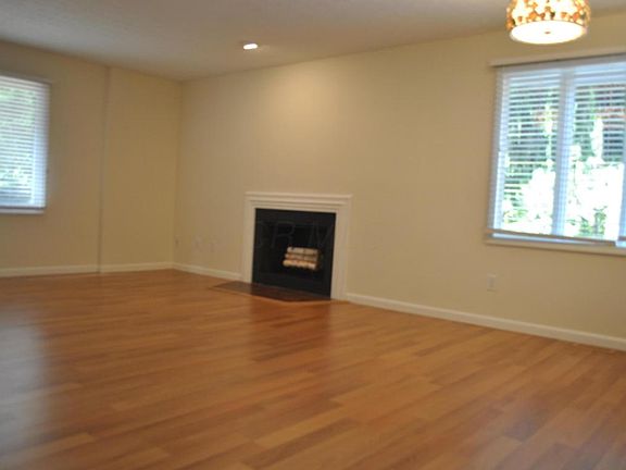 Beautifully updated spacious end unit condo with a super convenient and private location nestled in the trees! Many updates include newer paint, flooring, updated bathrooms with beautiful vanities, lighting, and updated kitchen, hot water tank, furnace, 6-panel doors! Newer wood laminate flooring throughout! All that's left to do is hang your pictures! Enjoy a formal dining room, eat-in kitchen, living room and a finished lower level to hang out or entertain! One covered parking spot, additional assigned parking and plenty of common parking next to the condo for guests! Water and trash are paid!! Just minutes from schools and parks, walking distance to bus stop, dog park, and less than 25 minutes to downtown Columbus or OSU!
