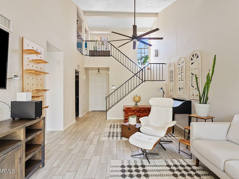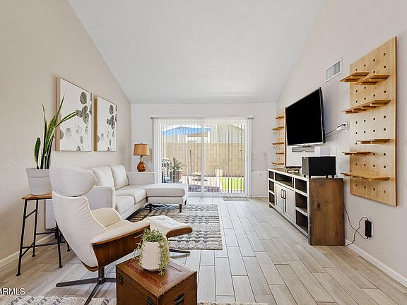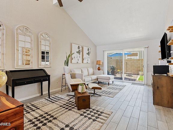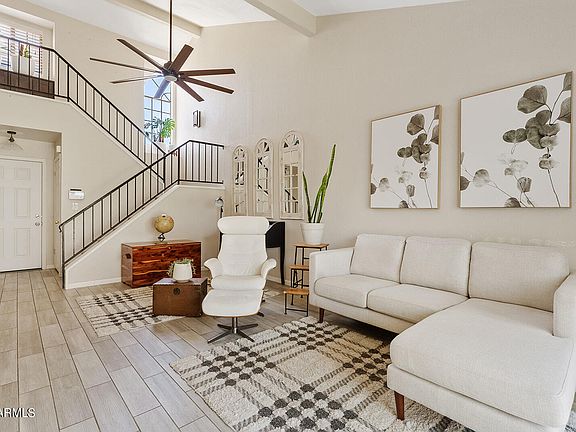 Check out this move-in ready 3 bedroom, 2 bathroom, 2 car-garage townhome in a desirable northeast Mesa neighborhood. This townhome has been updated from top to bottom and features one bedroom and full bathroom on the main floor with an additional bedroom, the primary bedroom and a full bathroom on the second floor. Wood-look porcelain tile makes for easy maintenance floors on the first level and the carpet on the stairs and in the bedrooms was replaced in 2021. The full kitchen remodel in 2017 included new flooring, new cabinets with plenty of storage, recessed lighting, a farmhouse sink and stainless steel appliances. Updated Lifetime Windows and Doors windows, a new sliding glass door, a recently replaced front door, and a new smart thermostat all help to keep energy costs lower... Artificial turf, pavers and gravel make for a low-maintenance backyard that is the perfect size for relaxing in the morning with a cup of coffee or grilling dinner in the evening. This townhome features a community pool, and is conveniently located close to freeway access, restaurants and grocery stores. Don't miss your chance to make this house your home!