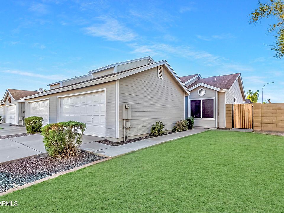 Welcome to this quaint community and step inside to this townhome capturing light with its cathedral ceilings. Tucked away, step into the open plan which emanates privacy and comfort. One of the only corner lots in Homestead, this one level unit has mature trees, and an oversized front yard. Quiet yet conveniently located to restaurants and shopping, give an urban feel while close to city parks. The back yard is great for entertaining, enjoying coffee, or gifting kids/pets with space to run and play. There is so much to do close by, only 15 minutes to the Salt River, downtown Mesa. With access to the 202 freeway, an easy drive to Tempe or Scottsdale for shopping, dining, and entertainment. Come view this gem soon. It will entice you with its contemporary flair, and fantastic location