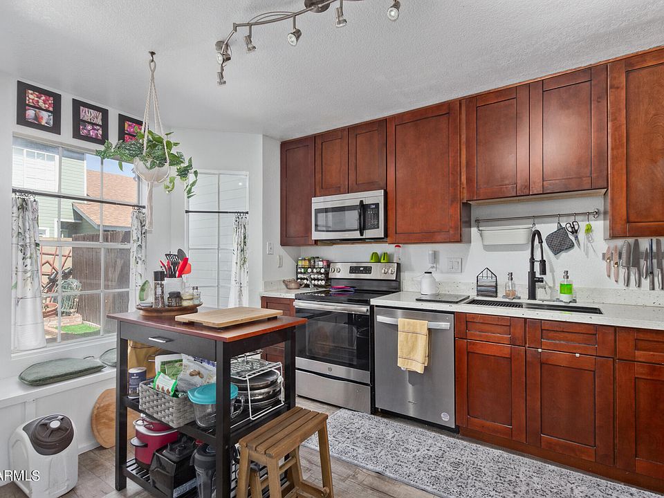 The heart of the home boasts a recently updated kitchen with ample counter space, plenty of storage, and stainless steel appliances. The recently installed LVP flooring adds a touch of style and easy maintenance.