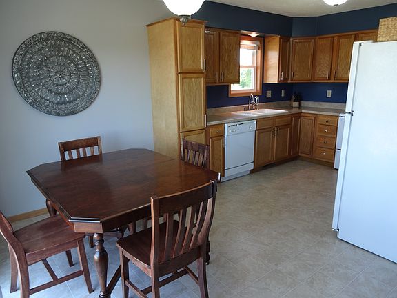 Built in 2005, this move in ready split foyer home has approx. 2045 total finished square feet. The upstairs has a vaulted ceiling in the living room and dining room. The kitchen has a new dishwasher. New carpet on both levels, daylight windows in lower level Lower level bathroom has a heated tile floor Large unfinished laundry/storage room Water softener 2 car attached garage Underground sprinklers in spacious backyard Large concrete patio Utilities: City Water, Natural Gas, Electricity, Septic Tank, Cable, Telephone. Approx. 1174 sq ft foyer and upper level and 1120 sq ft lower level Available to view after June 9