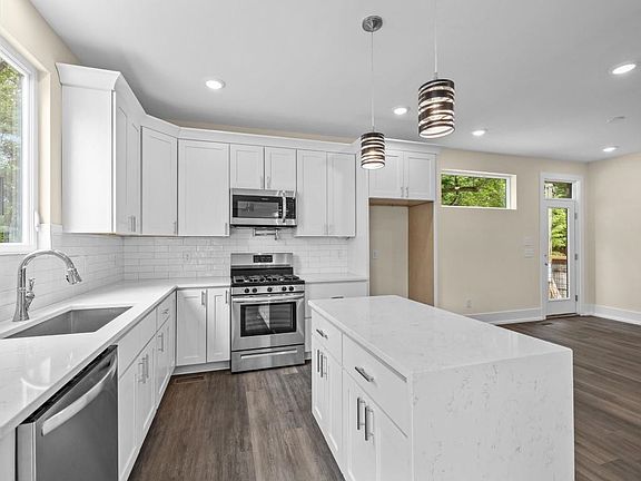Custom Build Located in the Center of Greater Triangle & Minutes to Duke University & Downtown Durham! Features Waterproof-Engineered Hardwood Style-Grade Flooring throughout 1st & 2nd Floors! This Home Boasts Luxury & Contemporary, Providing 9' Ceilings throughout! Upgraded Interior Features Including LED Can Lights, Quartz Countertops & Island w/Waterfall Edge, Designer Pendant Lights, Subway Tile Backsplash, Stainless Steel Appliances Including Gas Range & Pot Filler! The Spacious Dining Area is Open to the Kitchen & Family Room for Entertaining Ease! The Kitchen provides an Open Concept that Leads to the Rear Deck! Second Floor Access to an Outdoor Retreat to an Oversized Balcony Deck with Enclosed Cable Railings! Offers a Sealed Crawl Space & Tankless Water Heater!