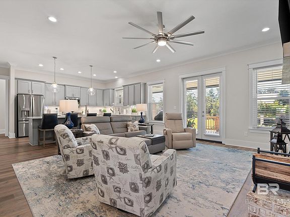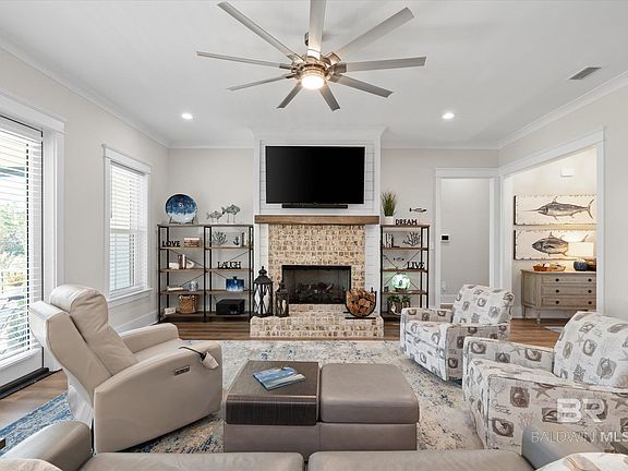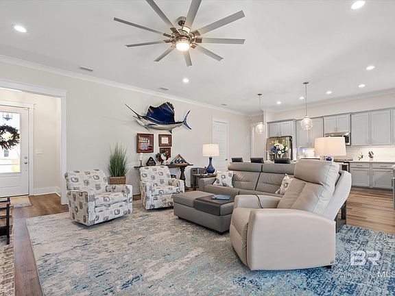 The Deal On ONO. Stunning coastal cottage located on the exclusive Ono Island. No stone was left unturned in this Gold Fortified custom-built home! This 4-bedroom, 3 and a half-bathroom home with a study features 10-ft ceilings, gorgeous hardwood floors, stainless steel appliances, granite countertops, and a beautiful backsplash in the kitchen with a massive island leading into the living area. The primary suite features a double vanity, private water closet, freestanding tub, separate shower, a huge walk-in closet, and a private door leading to the back porch. Whether you want to relax or gather with family and friends, this dreamy back porch is the perfect place to do that. The covered space boasts a cozy seating area with a TV to catch a game outdoors, a grilling area, and custom drop-down shades to keep you cool in those warmer months. Ono Island residents enjoy exclusive amenities such as 24-hour security, a community center, a private boat launch, playgrounds, pools, and exercise facilities. Don't miss the chance to experience the epitome of Island Living. The home is ADA-approved, with zero entry master shower, and wide doors to accommodate wheelchairs. The Home is equipped wit an irrigation system and a well, as well as an Attic Lift for easy Access, and a KOHLER Generator. The Garage has a mini split Installed. No detail has been spared. Buyer to verify all information during due diligence.