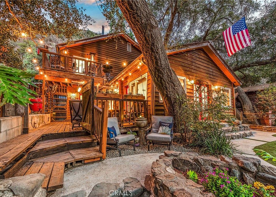 Just steps from the Cleveland National Forest, this incredible location provides access to some of the canyon’s best hiking, biking, and riding trails, immersing you in nature’s beauty. Inside, the spacious kitchen features stainless steel appliances, ample storage, an extended breakfast bar, and a convenient butler’s pantry. The adjacent dining area features a wood-burning stove, creating the perfect ambiance for intimate meals. A generously sized downstairs bedroom offers a private secondary entrance and can easily function as guest space. Downstairs bath includes an elegant vanity with smart-touch mirror, a sleek tiled shower, and contemporary matte black finishes, including a luxurious rain shower head. The expansive light-filled living room boasts high ceilings, a beautiful stacked-stone fireplace, entertainment bar area and elegant French doors that open to the outdoors. Additional large secondary bedroom located upstairs with attached laundry. The serene primary suite features an attached bath, stylish sliding barn door closet, and a private balcony. The bath includes a double vanity, smart-touch mirror, and a beautifully tiled bath with rain shower and modern glass sliding door. For creatives, the detached carriage house is an absolute showstopper! Horse owners and mountain bikers can quickly access the National Forest with miles of trails. The lush front yard and spacious side deck offer ample room for relaxation and entertaining. The custom reclaimed wood bar and BBQ area make outdoor dining effortless, while the beautifully terraced backyard provides additional seating and entertainment space w/ breathtaking canyon views. Additional highlights include central heat and air, a standard propane water heater, and an additional solar water heater. This sale includes three parcels of land, providing ample space for RV parking, multiple vehicles, horse corrals, and more.