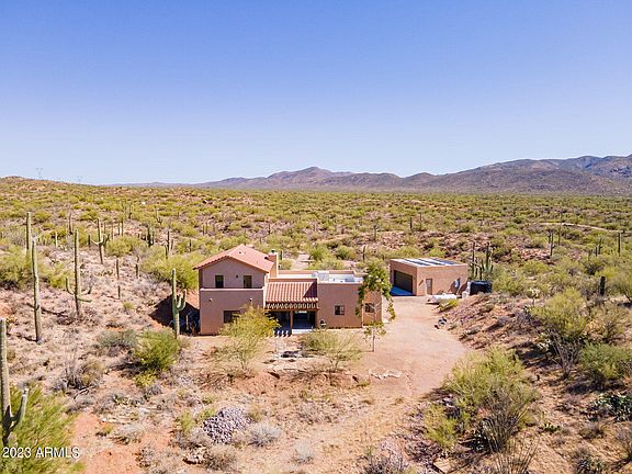 This is a home on 10 acres of land that most could only dream of owning. The home is an extraordinary 1,959 sqft, 3 bed, 2 bath custom build completed in 2014. Your home is entirely off-grid, with a well and solar power with battery bank and backup generator. The desert and mountain views are breathtaking. With 10 acres, there is easily enough room for another dwelling. Enjoy the views and abundant wildlife during the day and the fireplace, outdoor firepit, and stars in the evenings. This home is behind a private gate after a drive down a dirt road well outside the city. Neighbors recently gifted over 100 acres back to the state as a preserve. Downtown Marana and the comforts of city living are about 20-30 minutes away, making this a true getaway.