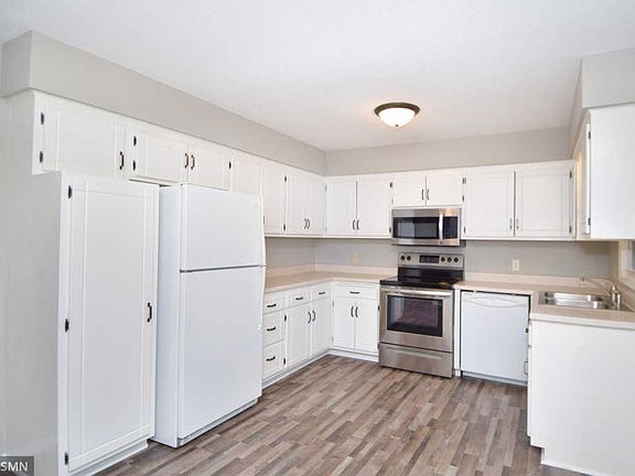 Amazing opportunity to own this fantastic spacious rambler in NW Coon Rapids (near Andover border) walking distance to parks, minutes from Hwy 10, Riverdale shopping, & restaurants. Freshly painted interior and new vinyl plank flooring in kitchen and new carpet throughout, 4 bedrooms and 2 baths including private 3/4 master bath, 3 large bedrooms on the main level with large closets, newly tiled baths, eat-in kitchen with white cabinets, pantry, & sliding doors to patio, newer vinyl windows throughout, full basement with large 4th bedroom & family room, new water heater Dec 2020, well for irrigation, extra large 24 x 24 insulated garage (built in 2001) with shelving and cable & sound wired to LR in home, concrete edged yard & freshly mulched (March 2021), completely fenced yard, & mature trees. This clean rambler has been well-cared for and is move-in ready! Home has been pre-inspected by Amerispec.