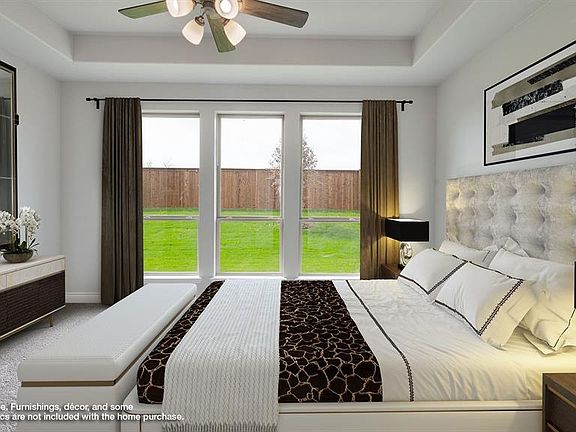 PERRY HOMES NEW CONSTRUCTION! Library with French doors and 11-foot ceiling set at two-story entry. Wood-look tile floor featured in library, kitchen, family room and dining area. Open kitchen features quartz countertops, walk-in pantry and island with built-in seating space. Family room features fireplace and wall of windows. Dining area opens to two-story family room with wall of windows. First-floor master suite includes bedroom with 10-foot tray ceiling. Double doors lead to master bath with dual vanity, garden tub, separate glass-enclosed shower and large walk-in closet. Additional bedroom is downstairs. Secondary bedrooms and game upstairs. Covered backyard patio. Mud room off two-car garage.