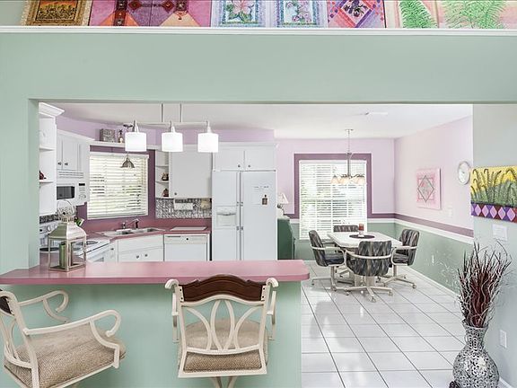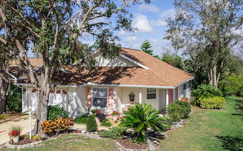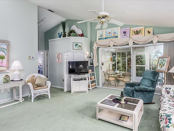 This move in ready fully furnished home located on a quiet cul-de-sac is sure to please. Enter to find custom window treatments, vaulted ceilings & plant shelves illuminated by track lighting. The kitchen boasts a pantry, ample cabinets, breakfast bar w/ pendant lighting + 8x13 dining area. Coved ceilings and walk in closet can be found in the master bedroom, single bed +trundle bed in guest bedroom. Both baths have large linen closets. 17x18 living room provides plenty of room for entertaining. Sliding glass doors lead to florida room featuring windows & screens offering a private setting & view of natural foliage (property backs up to state owned land) step out to paver brick patio. Skeeter beeter on garage, newer a/c & roof is 2017, all this in an active adult community w/ 2 golf courses, tennis, pickle ball, pool & restaurant.