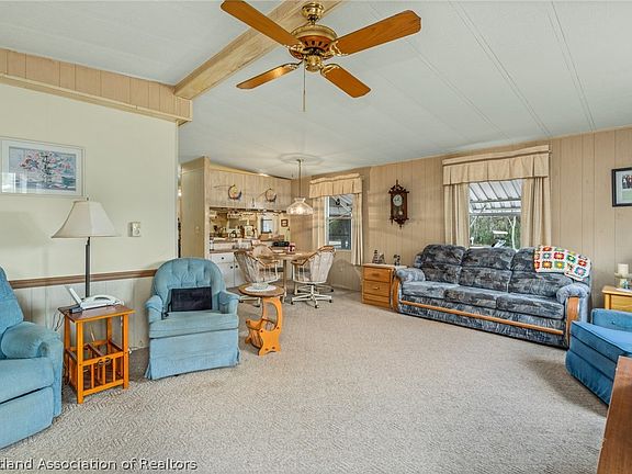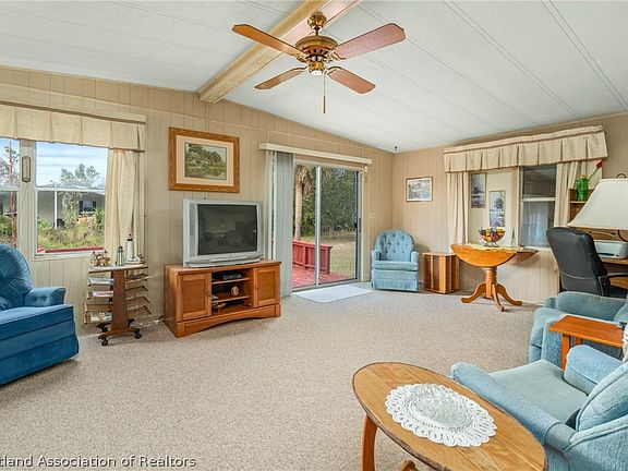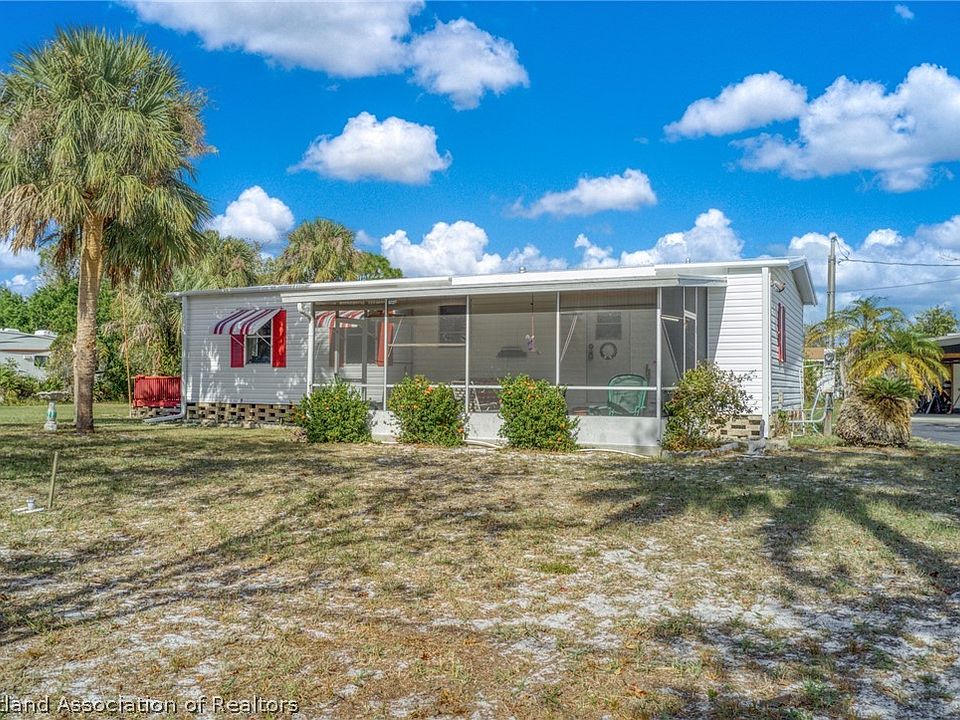 Mobile home on owned land and no HOA. This is located on a 1/2 acre property with a nice sized yard where you can store your boat, RV or any toys. Solid 2 bed 2 bath mobile with front screened in porch, rear finished enclosed family room, side open deck and lots of windows. New roof and New AC. Detached 2 car carport and shed. Fully furnished. What you see is what you get. Invest in Florida! Close to Little Red Water Lake.