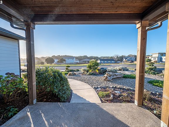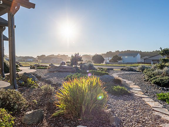 Do not miss this beautiful 3 bedroom, 2 bath home nicely located in Bandon Oregon. The house is a 1842 sq ft custom home built in 2017. Interior features include custom kitchen that has stainless steel appliances, engineered hardwood flooring, quartz counter tops, tile backsplash and island. As you enter the front door you walk into a good sized great room. The great room has the custom kitchen, dining area with sliding door to the exterior, and spacious living room with stone fireplace, pellet stove insert and coffered ceiling. Heading left you will find 2 bedrooms with nice closets and a guest bathroom that features concrete countertops and tile tub surround and flooring. To the right of the great room is a large laundry room and pantry combination. Beyond this you find the primary suite with vaulted ceilings, huge bathroom with walk in tile shower, tile flooring and large walk in closet. There is a storage closet and garage access beyond the primary bedroom. The home has beautiful color schemes, nice window covering and a very cozy coastal feel. Mature landscaping, great front porch, patio in the back and sun porch are some of the amazing exterior features. Located on Lincoln Ave you are within minutes of the public beach access. This home is a rare find. Call for an appointment today!