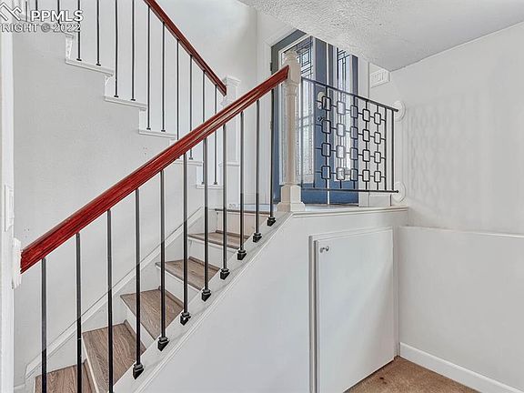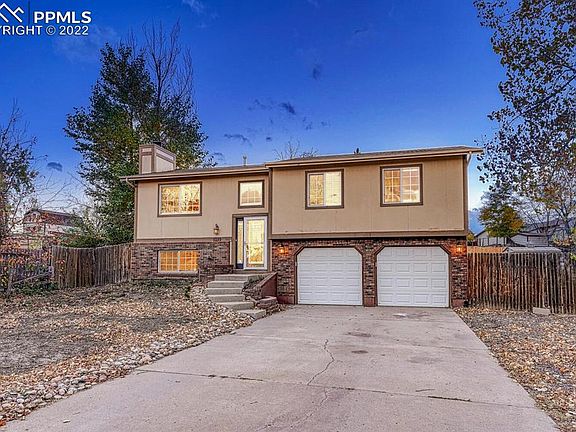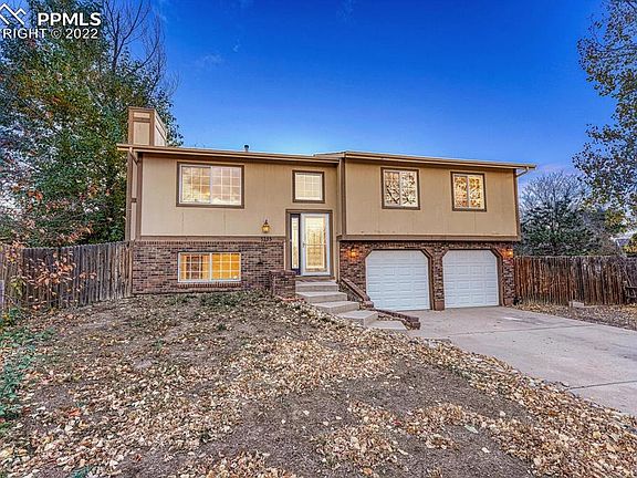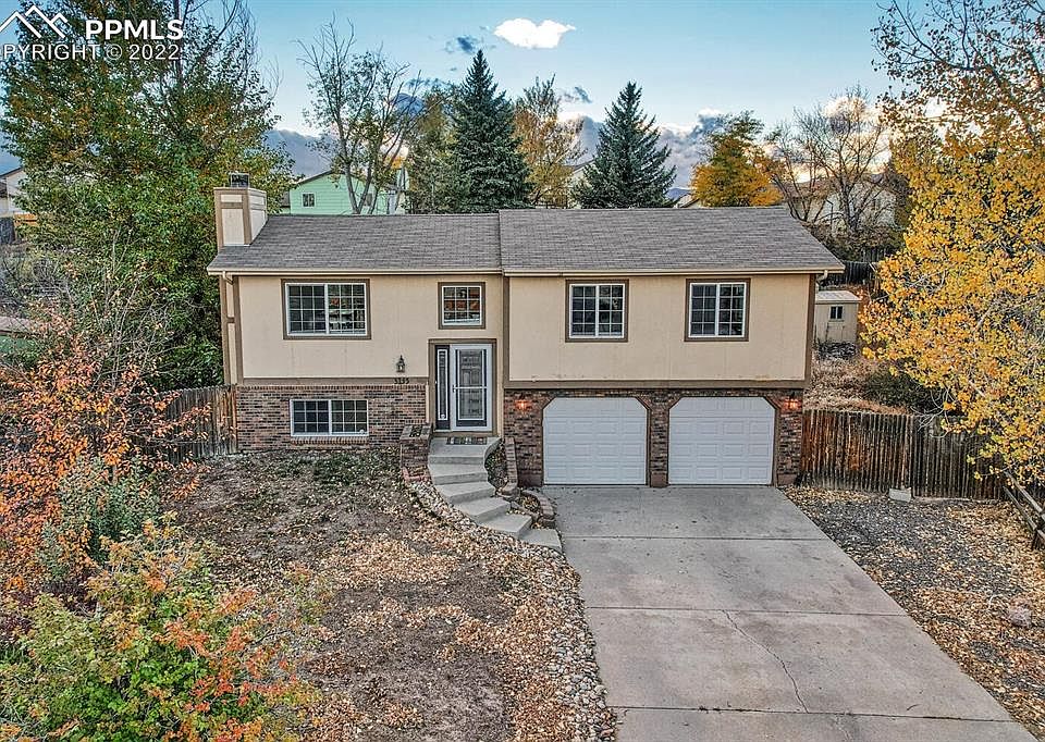 Beautifully updated home situated on one of the largest lots in the neighborhood and in a quiet cul-de-sac! No HOA. Plenty of room for your toys, vehicles, or RV. Attractive front door with lead glass insert and storm door. The stairs have iron rails to the upper and lower levels of the house. 9FT ceilings. Gorgeous Pergo floors through the upper level. All curtains and rods stay. Open floor plan with spacious living spaces great for entertaining. Evaporative cooling. The vaulted Living Room has a lighted ceiling fan, a large window, and a pass-thru to the Kitchen. The Dining Area includes a lighted ceiling fan and a slider to the backyard deck. The Updated Kitchen features track and pendant lighting, a garden window, and white cabinets w/butcher block countertops and attractive stone backsplash. Stainless steel appl incl a smooth top range oven, dishwasher, built-in microwave, and side by side refrigerator. There are 2 BRs and an updated Shower Bathroom on the upper level. The Primary Bedroom has cellular shades and a walk-in closet. BR #2 has cool paint tones and is currently used as a gym. The updated Shower Bathroom offers a vanity, framed mirror, modern lights, and a tiled shower w/deco strip. The lower level features under stair storage and a Family Room w/neutral carpet and wood-burning fireplace w/tile surround. The Laundry Area has a washer and dryer that stays, a non conforming BR (no closet) w/wood panel accent wall, and a Shower Bathroom w/tile floor, vanity, framed mirror, and tiled shower. Oversized, 2-car attached garage w/door opener. The fenced backyard features a large wood deck w/covered pergola for out door relaxation and fun. There is a hot tub (as is) and a storage shed for tools and toys. This home is close to highly rated D20 schools, John Venezia Community Park, The Shops at Briargate, Powers Corridor, and Memorial North Hospital. Minutes to I-25 and an easy commute to the USAF Academy and Peterson Air Force Base (Space Command).