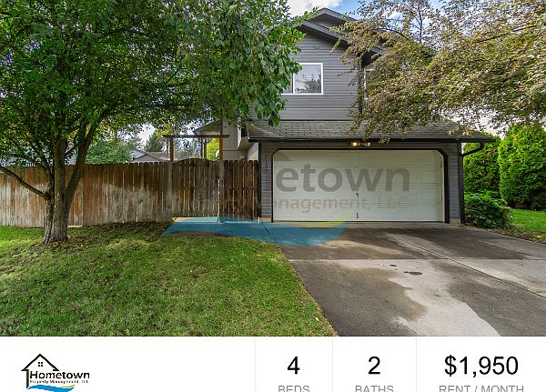 4 Bedroom 2 Bathroom Home with Attached 2 Car Garage Available in Coeur d'Alene! At 1220 square feet in total, this home offers four bedrooms, two bathrooms, an attached two-car garage, and a fully fenced back yard. The main entrance into the home is inside the fence and is accessed through a gate for added security and privacy. The unique architecture of the home places the main living areas on the second floor, while garage entry, two of the bedrooms, and one of the bathrooms are all located on the ground floor. The front door is up a half flight of stairs and sits under a covered porch. Upon initial entry in the home, you step onto the landing of the home's stairway, which forms a windowed foyer with a coat closet. One half flight of stairs takes you up to the second level, the other half takes you down to the first level. Right at the top of the stairs, you walk into a living room with vaulted ceilings and a large picture window looking out onto the back yard. Immediately adjacent is the dining room. This dining room has its own chandelier and a built-in china hutch. The hutch is a stunning showpiece in the home with glass shelves and interior lights. The kitchen greets you with a breakfast bar wide enough for three barstools. This modern kitchen comes complete with an electric range and oven, a stainless steel sink with garbage disposal, a dishwasher, a microwave, a large stainless steel double-door refrigerator with a deep pull-out freezer drawer, and rows of cupboards and drawers both above and below the counters. Both bedrooms on this level feature ceiling fans and wide double-door closets. The bathroom is a full bath with a tub and shower. On the ground level, the third bedroom also features a double-door closet. The fourth bedroom does not have a closet and would make an excellent home office. The ground level bathroom features a shower stall and a laundry nook with washer and dryer hookups. There is a sliding glass door in the dining room that leads to a second-story deck large enough for a set of patio furniture. A set of exterior stairs takes you down to the back yard. This yard is fully enclosed, making it an ideal place for family gatherings and for children to play in. A sprinkler systems is available to water the grass. Floors throughout the home are laminate flooring. One bedroom upstairs is carpeted. Venetian blinds have been installed in all of the windows. The home comes with air conditioning, and heat is provided by an efficient forced air gas furnace. The home is located in a popular residential neighborhood called Davis Park and is approximately ten blocks away from the Costco Wholesale shopping center. There are no HOAs or CCRs. No smoking. Dogs 40 pounds or less will be considered on a case by case basis and will require owner approval. Application Fee: $40.00 Security Deposit: $2,150.00 Pet Deposit: $400.00 per pet Monthly Pet Rent: $35.00per pet No smoking. Dogs 40 pounds or less will be considered on a case by case basis and will require owner approval.