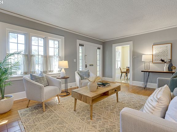Nestled on a serene, tree-lined street in the popular Alameda neighborhood, this adorable bungalow offers quintessential Portland charm. Step up to discover original details like a classic brick porch with curved stairs, original divided light windows, and wood siding. Inside you'll find hardwood floors throughout the circular floor plan, leading to a cozy wood-burning fireplace with an original wood mantle.Natural light fills the kitchen and dining nook, creating a warm and inviting atmosphere. Two bedrooms and a full bath on the main floor provide comfortable living space, while an attic bonus room offers additional versatility.Outside, the private, spacious and sunny backyard features mature plantings, and is ideal for urban farming, pets and relaxation. Off-street parking is conveniently provided in the paved driveway. The unfinished basement extends the living space, perfect for hobbies, storage, or future expansion.Enjoy the prime location near parks, schools, coffee shops, restaurants, and Portland's renowned Garden Fever garden store. Don't miss your chance to call this delightful bungalow home! hes4 [Home Energy Score = 4. HES Report at https://rpt.greenbuildingregistry.com/hes/OR10230950]