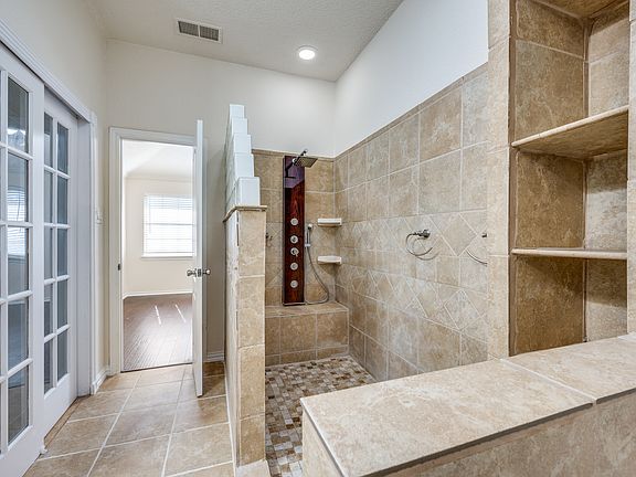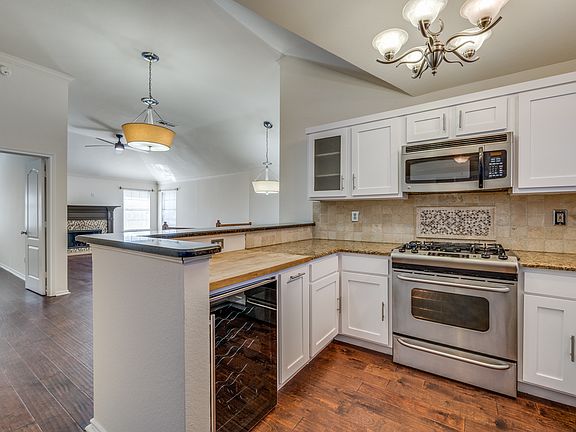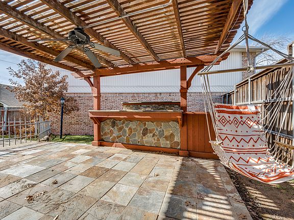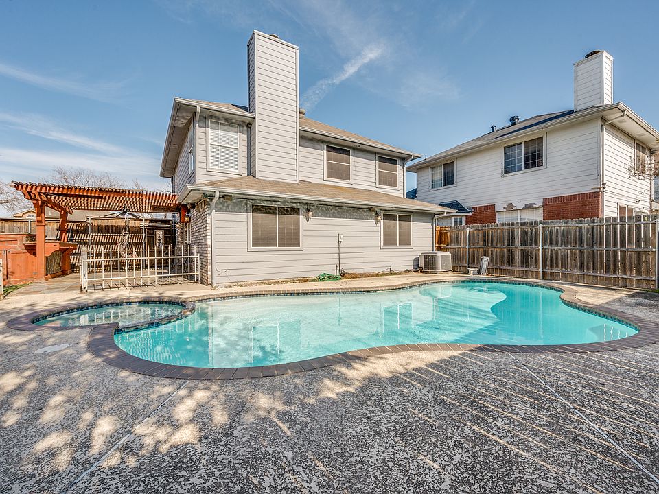 Split Level Home with Pool that is Move In Ready! New Paint & New Flooring! FRIDGE, WASHER, DRYER INCLUDED! This 3-bedroom, 2-bath home offers an incredible blend of style, functionality, and luxury. From the moment you step into the dramatic two-story entryway with a custom fireplace, you'll feel right at home. Boasting Engineered floors throughout, vaulted ceilings, and upgraded light fixtures, this home is packed with features you'll love. The open kitchen is a chef's dream, complete with granite countertops, stainless steel appliances, a wine fridge, and a custom-built pantry. The breakfast area offers built-in storage. The spacious master suite overlooks the pool, & includes a walk-in stone shower, his-and-her closets, and granite counters with designer glass bowl sinks. Entertain effortlessly in the two living areas one upstairs and one downstairs perfect for guests, in-laws, or teenagers. The second living offers direct access to the backyard. Step outside to the covered pergola featuring a concrete bar, perfect for hosting gatherings. The sparkling pool and spa provide a tranquil escape, while the pet-friendly artificial turf adds charm and ease of maintenance. Conveniently located near George Bush Turnpike, shopping, dining, and entertainment, this home truly has it all! Pool and Spa is not Heated. Apply Online, 55.00 APP fee per adult, Sec Deposit, and 125 one time lease admin fee due at signing. Owner requires monthly pool service to be maintained for 225.00 a month.